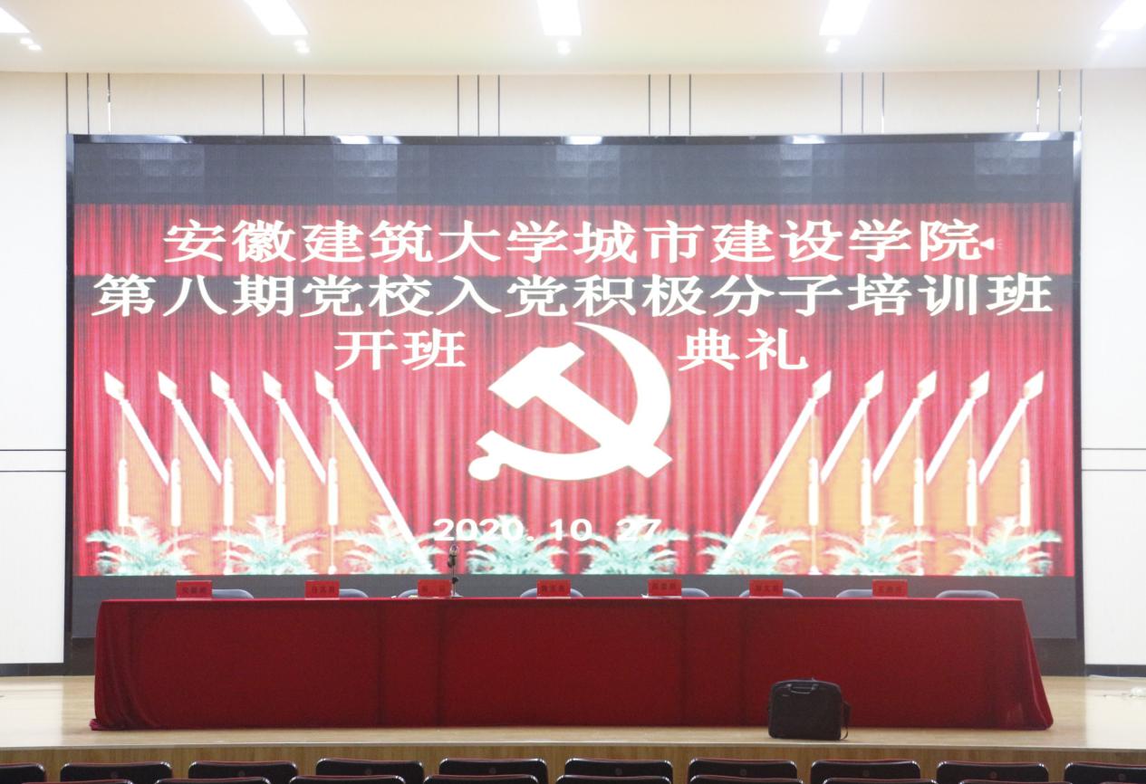 2020年10月27日下午6点,安徽建筑大学城市建设学院第八期党校入党积极分子培训班开班典礼召开。党校副校长魏宪友,党委办公室副主任范慧娟,党支部书记韩云、刘文君、马其霞,党支部支委委员吴雅婷、王海月出席会议。会议由机关第一党支部书记韩云主持。