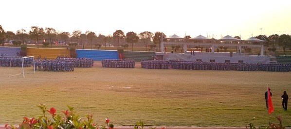 一个个连队也不在只拘泥于固定的位置进行反反复复的训练,教官们也收到了新的教学任务,同学们也时刻打起精神毫不懈怠地听从教官们的指令。无论是多少次的“重来”,“再来一次”,“不对,回到原来的位置上去”等等,教官一遍又一遍的吼声从喇叭中发出,即使这样同学们也没有丝毫的不耐,抱怨和松懈。新的指令,新的位置都需要同学们牢牢记住,这考练的不仅仅是同学们的体力,还有强大的记忆力。十九个连队也不再分开,开始了第一次的合并,可所有连队的合并并不是那么容易。一场完美的演出,需要最无懈可击的细节。每个连队从开始的站位,到中间的转弯,再到步姿的变换,都需要反复的排练和更改。口号的喊起,步伐的迈起,头颅的昂起,都有指定的时间,指定的位置,指定的方向。为了能在最后呈现最好的效果,每个教官,每位同学,都打着十二分的精神去完成每一项指令,每一项任务。一圈又一圈的排练,一遍又一遍的纠正,一次又一次的完美,都带着同学和教官们的汗水和努力。经历了风雨,才能见得到彩虹,经历了黑暗,才能迎得到黎明;在成功的峰峦上有汗水的溪流飞淌,在完美的珍珠里有努力的心血闪光。而此刻啊,那一抹抹蓝色的身影,正在伴着夕阳,为之努力,为之坚持!