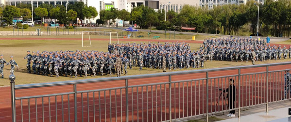 随着时间的流逝,准备工作的进行,教官们也不再是站在连队的旁边进行指挥,而是站在主席台上用目光来审判着同学们的动作。同学们也不再喊着“一二一”、“一二一”的口号来前进,而是听着音乐的节奏来迈出每一步。每位同学的脚步,从最初的杂乱无章到整齐划一,从开始的慌张无措到自信从容;每一步的迈出都带着坚毅刚强的眼神,每个动作的完成都带着不可阻挡的气势。一次次的排流过的时间,改变的是同学们的步伐,不变的是同学们坚持不懈的信念和奋勇向前的斗志!