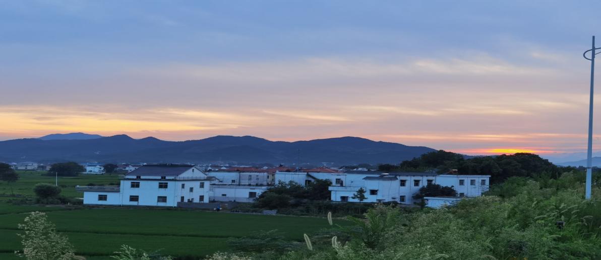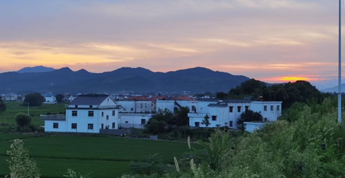 暮色中的小山村被温馨朦胧的红霞所笼罩。