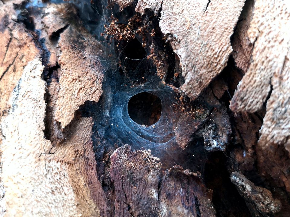 假山旁边有个布满蜘蛛网的地方,盘成了圆圆的洞口,那里面或许阴暗或许潮湿,但可能也会有一个小生命正在睡眠。