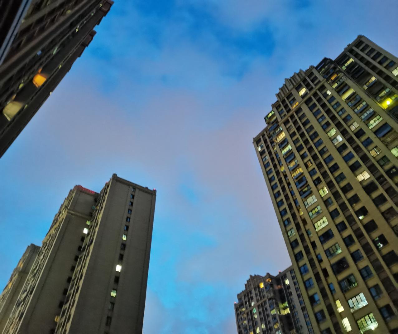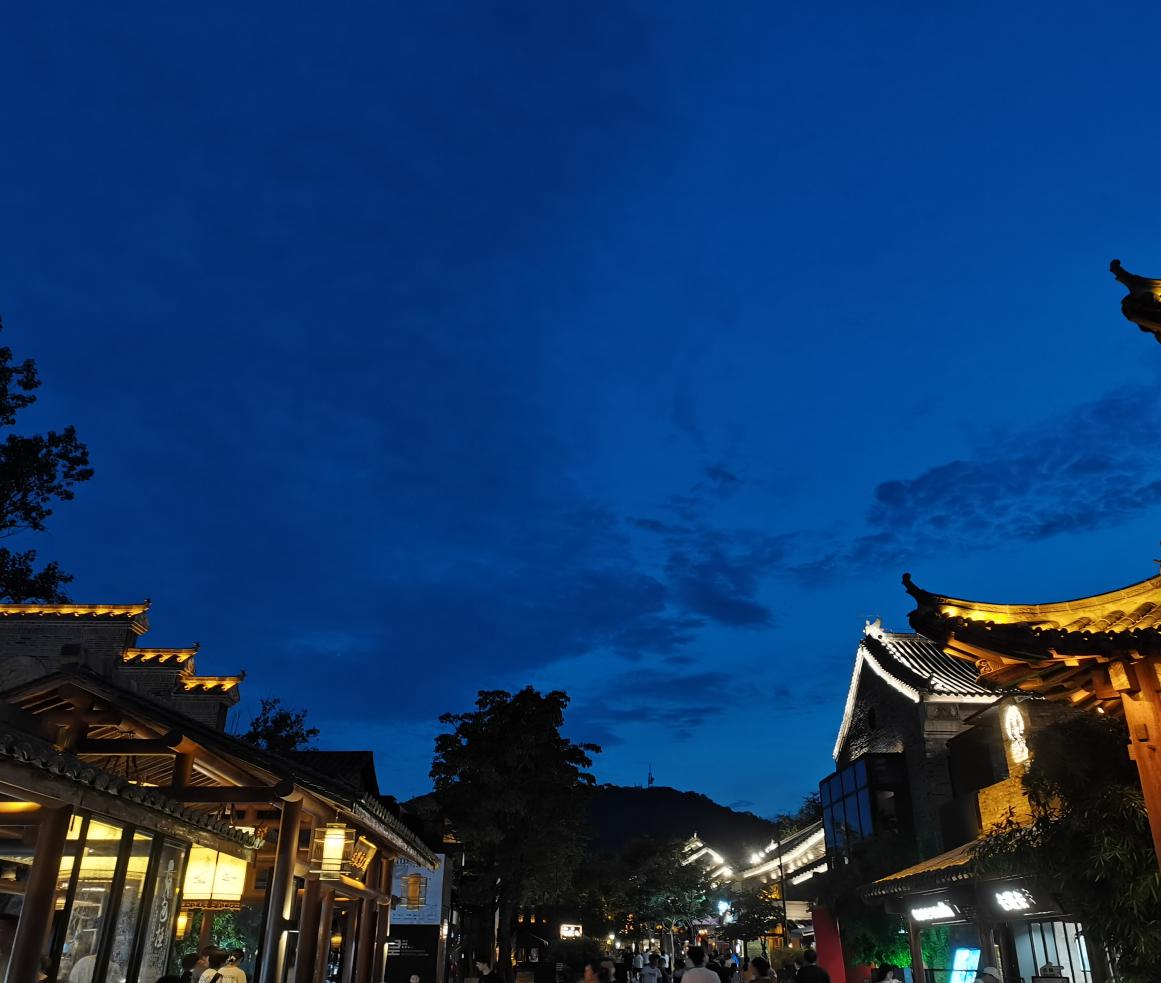 蓝的清澈的天空与嘈杂的街道形成天然对比,大蜀山脚下的人们不禁向往着美好的未来。