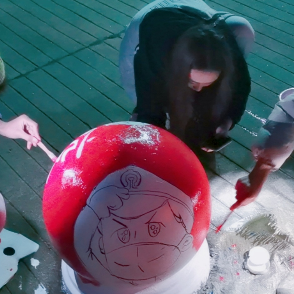 每组都有一名建艺系宣传部的成员作为负责人提供后勤保障,带领本组成员到指定区域作画。每组根据人员分配相应的石墩和井盖进行作画,绘画工具由建艺系宣传部统一提供。