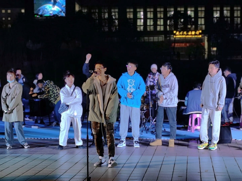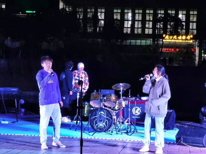 更让大家兴奋的是与合肥师范学院的联合演唱,这更好的推进两校的校园文化交流,一首摇滚乐为我们重新定义了爱,全场气氛爆发出新的高潮。单纯美好、青春永不散场的《样》,富有感染力的旋律,让整场音乐会洋溢着如火的青春热情,在场观众如痴如醉。音乐会期间,观众打开手机闪光灯与现场互动,临近尾声,乐队带来的演奏将现场气氛推向了新的高潮,演奏者一边表演一边与在场观众交流互动,大家的热情越燃越旺,场上场下融为一体,更让人欢呼的是小姐姐们带来的青春街舞表演,每个人都置身于亢奋激昂之中!作为正逢青春的我们有精力也有条件去爱,正如《偏爱》中所唱一样“如果我错了也承担,认定你就是答案”一样,我们在命运的交织点,有勇气也有机会去认定生命的答案。当然这些以爱为名的歌也给之前名为“爱要大声说出来”的活动画上圆满的句号,至此愿所有人都可以等到值得爱的人。