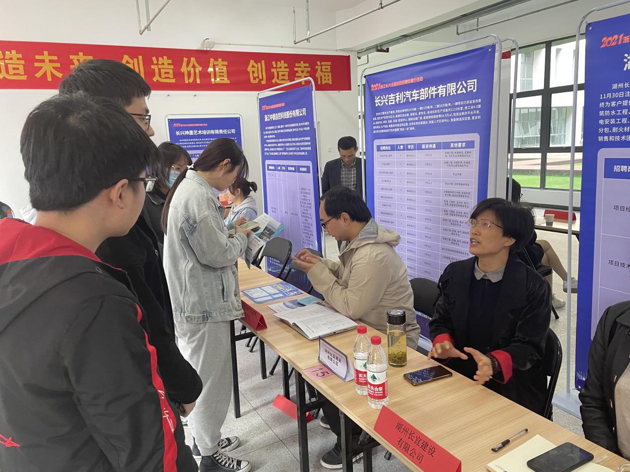 为深入贯彻教育部2021届高校毕业生就业工作调度视频会议精神,进一步做好学院毕业生就业创业工作,加强毕业生信息衔接,拓宽就业渠道,强化就业兜底保障,精准施策促进高校毕业生就业创业,4月8日下午2:00,学院在岗集校区成功举办浙江长兴专场招聘会。