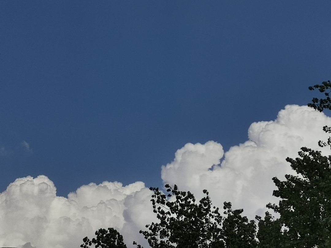 一缕白云,像轻纱一样,被晨风徐徐吹送,从那片树林的梢上飘来,停在我们的头上,低回流连,似乎不忍离去。中午的云更是让你神秘了,许多白云犹如一堆堆棉花糖。午后的云朵变得很多,很厚,它们排的很整齐,两个一伙的飘在碧蓝的天空中。
