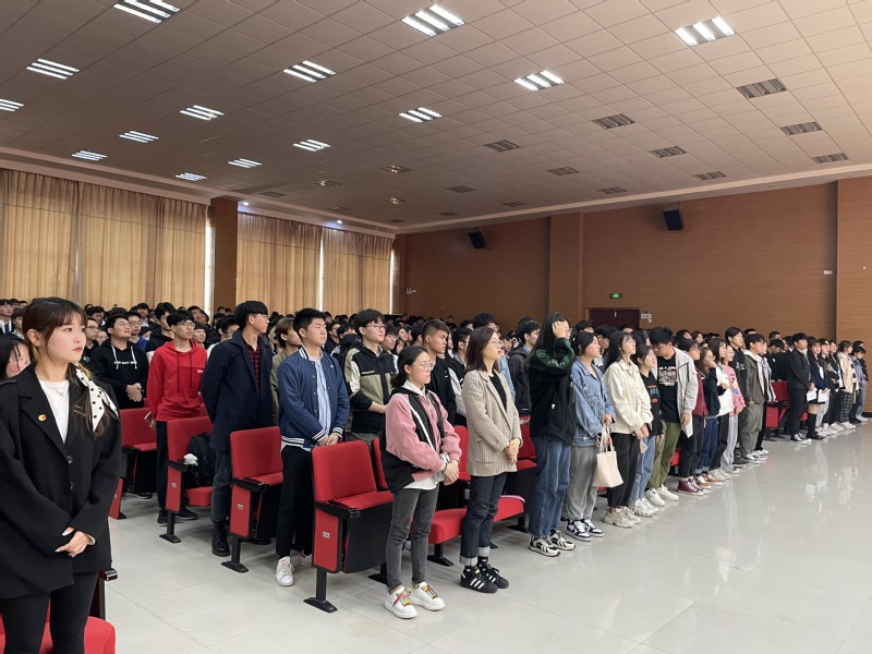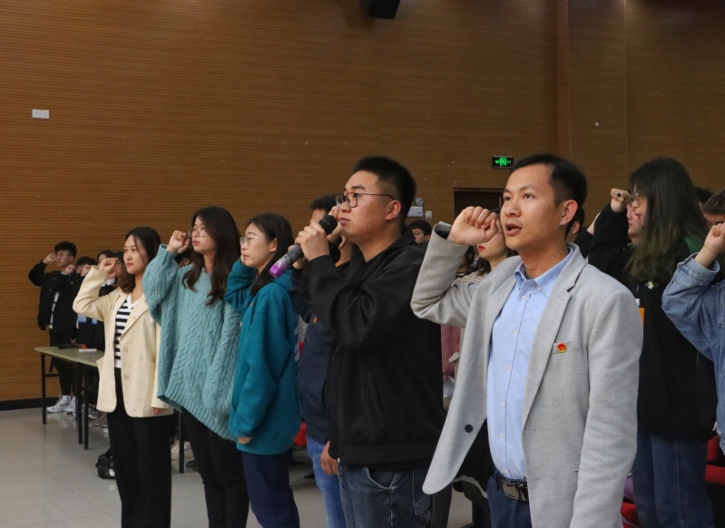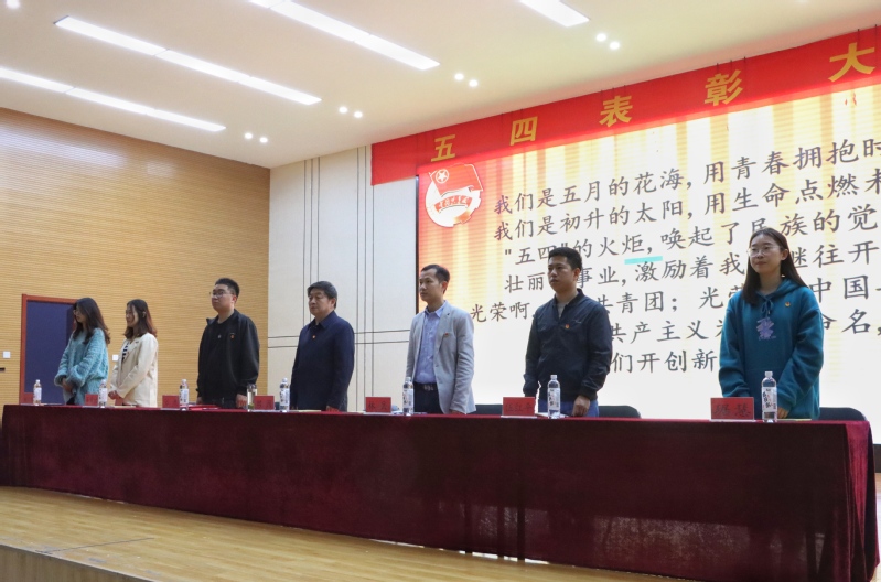 伴随着嘹亮的团歌此次大会拉开帷幕,由团委书记林岳宣读《关于表彰2021年度“优秀团支部”“优秀团干”“优秀团员”的决定》。随后,优秀团支部、优秀团干、优秀团员代表分别上台领奖,伴奏再次响起,在团委副书记张洲的带领下,全体师生重温入团誓词,字字铿锵有力,句句掷地有声!