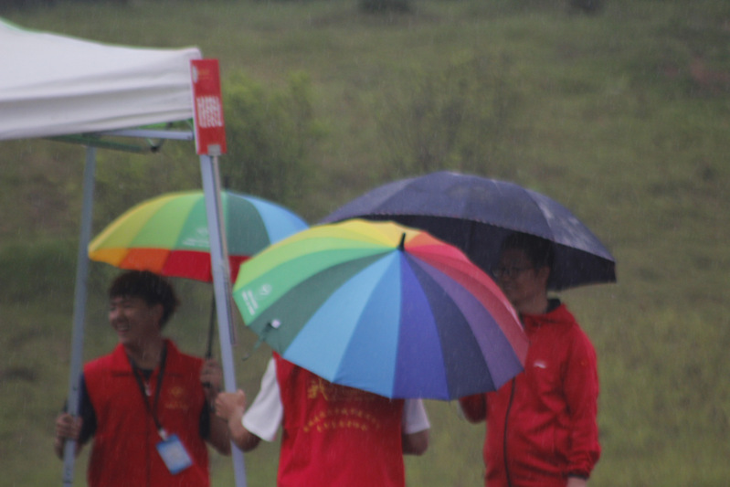 在运动场的各个角落你都会发现红衣马甲的身影,这是由院学生会、青年志愿者协会、社团联合会、大学生艺术团组成的运动会志愿者队伍。整个运动会期间,他们从始至终都坚守在自己的岗位上,未曾离开。他们的手里或是量跳远、铅球距离的尺子,或是记录时间的秒表,或是雨中暖胃的姜汤,或是挥动的小旗子,或是清理雨水的工具。在赛场上,志愿者的身影是一道亮丽的风景线。