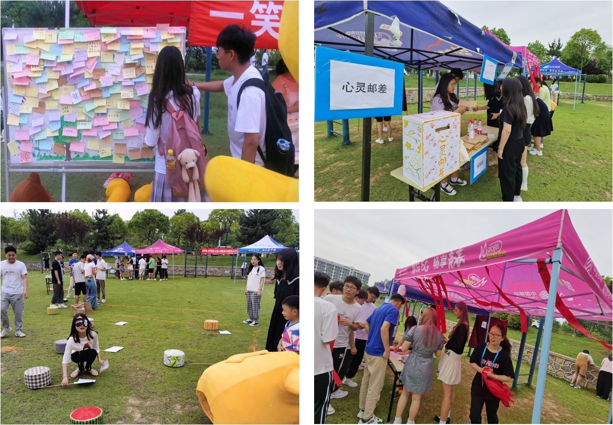 活动分为体验区,挑战区,探索区三个区,共包括9个游戏项目,在体验区有爱的抱抱和情绪便利贴两个项目,旨在引导同学们注意到每个人都有爱与被爱的需求,能在他人需要帮助的时候给予善意;同时,也要积极表达出自己的需求。在挑战区有四个游戏项目,分别为信任之旅、能量传输、不倒森林以及反向思维,这四个项目旨在帮助同学们明白团结协作、以及信任同伴的重要性,游戏中有双人协作,也有多人合作的项目,过程中同学们不仅体会到了乐趣,放松了身心,更增进了彼此之间的感情。在探索区设置了一些触动心灵的小游戏,比如有帮助同学们解答困惑的“答案之书”,还有承载同学们纯粹而又美好的祝福的“心愿大树”,以及帮助同学们诉说心底秘密的“心灵邮差”。同学们每完成一个项目就可以获得一个印章,集齐6个印章即可参与抽奖。在游戏中,同学们和玩偶深情拥抱,在展板上留下心情寄语,在祈福带上写下心愿,通过书信传达自己的心意,在“答案之书”中寻找期待的结果,在“反向思维”中锻炼自己的反应力,在“能量传输”中与队友亲密合作,传递气球,在“信任之旅”中互相配合,在“不倒森林”中,寻找不怕挑战,迎难而上的勇气,在大家的共同努力下逐渐配合默契,直至顺利完成挑战。