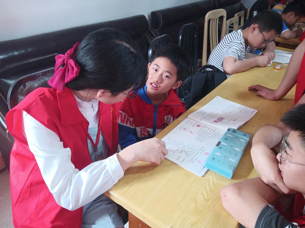 在活动开始之前,志愿者先辅导小朋友们完成老师留下的家庭作业,小朋友们认真思考,坚持做到“玩的时候好好玩、学的时候好好学”。在一阵欢快的歌声中活动正式拉开了帷幕,小朋友们都兴致盎然了起来。歌唱过后,各位志愿者和小朋友们一起玩了游戏,在游戏猜谜语、爱的抱抱、夹乒乓球的过程中,小朋友们都积极参加,兴致很高。