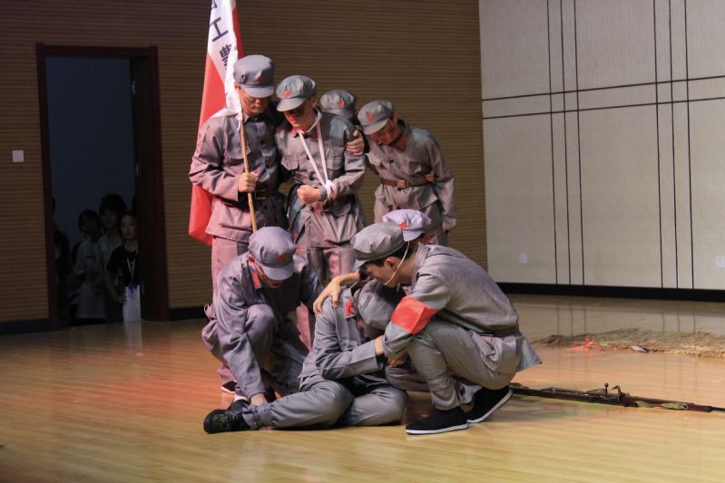 砥砺前行,胸怀千秋伟业,恰是百年风华。大幕拉开,建艺系学生带来的红色话剧《金色的鱼钩》把在场观众带进了那场伟大的征程里。通过他们的演绎让我们看到了在红军长征途中过草地,老班长忍受着饥饿与寒冬,把鱼和生的希望留给了小战士,但也把死亡留给了自己。在这场伟大的征程里,正是因为有了太多像老班长这样不怕牺牲,舍己为人的前辈,才让革命的火种生生不息,才让革命的有生力量得以保存,才使得革命取得最终的胜利。