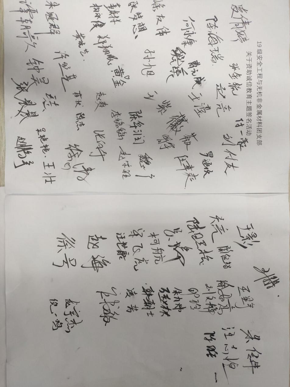 诚信是中华民族的传统美德。诚是诚实、真实、谦诚;信是信用、信誉、守信。孔子说“人而无信,不知其可。”李白说“三杯吐然诺,五岳倒为轻。”这都体现了诚信的重要性。为此,2021年6月17日晚19级无机非和19级安工专业,在南教201开展诚信教育主题班会宣扬诚信精神。本次班会由安全工程专业团支书陈海瑞同学主持。