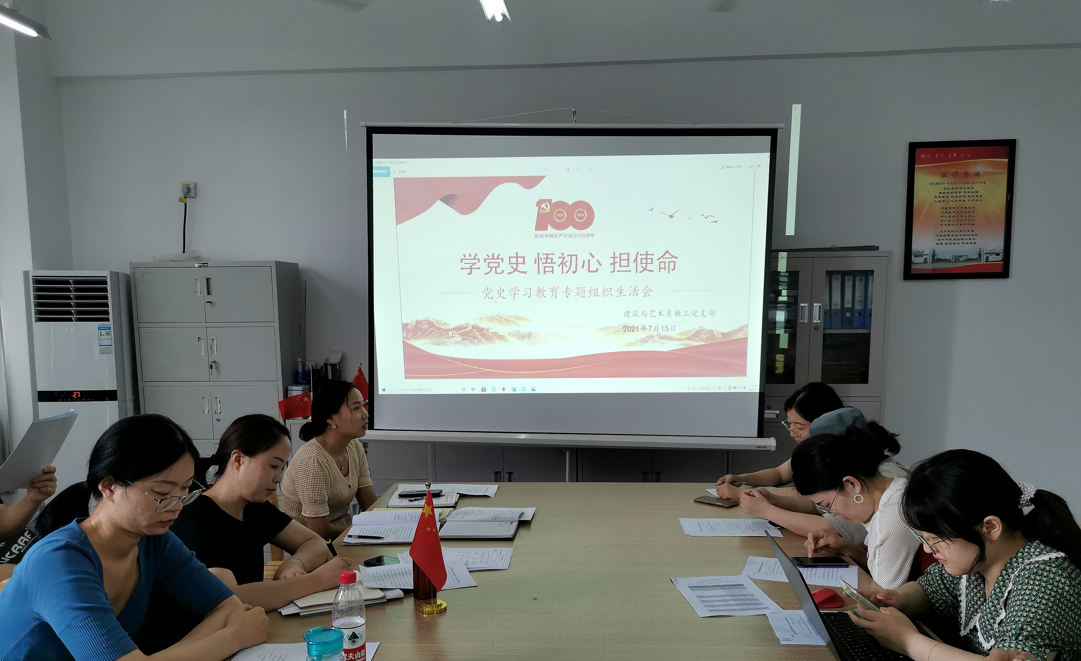 7月15日下午,建筑与艺术系教工党支部召开2021年度党史学习教育专题组织生活会,本次组织生活会的主题是“学党史、悟初心、担使命”,党支部书记王正梅主持会议,党总支书记王利康参加会议,支部全体党员参加会议。