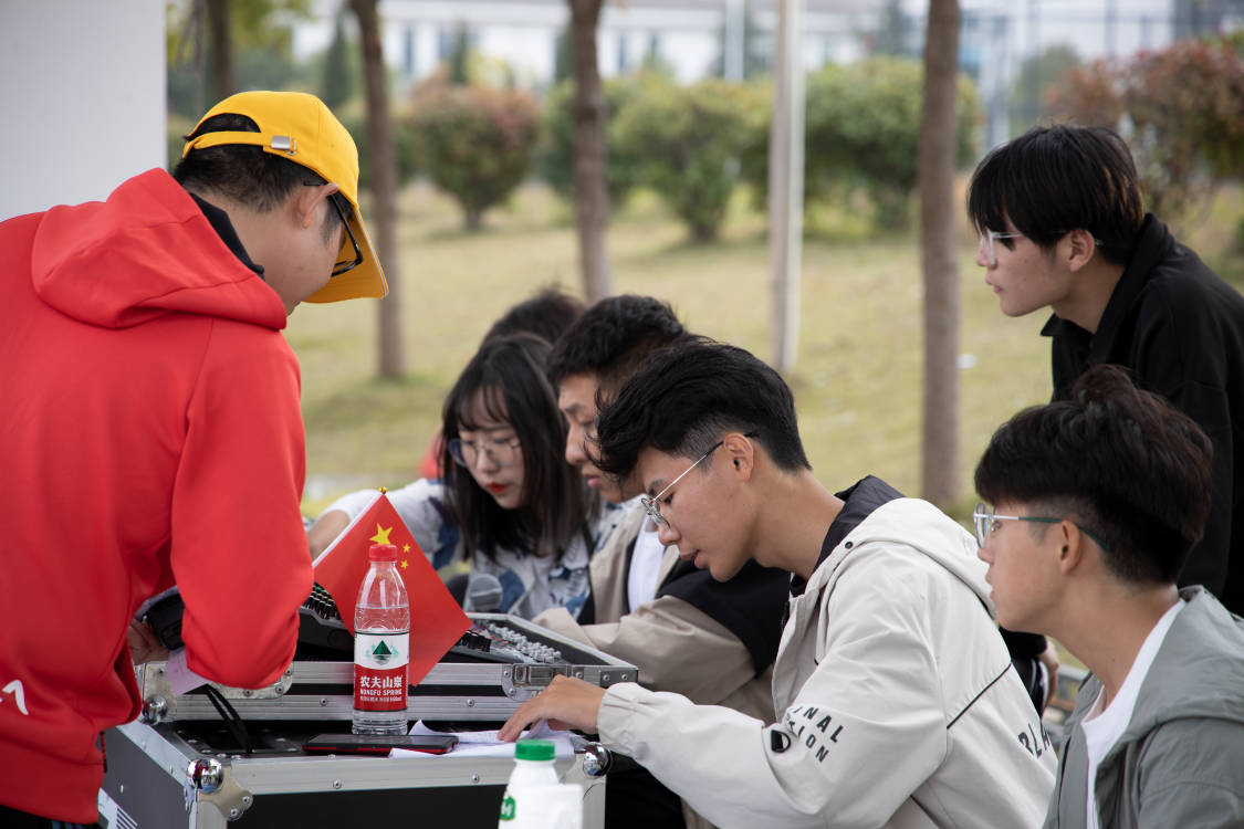 充斥在绿茵赛场上的不仅有火热的运动气氛,还有从广播站传出的一声声来自亲友们最衷心的祝福。在选手们即将开始比赛前的紧张气氛中,来自同一专业的或者关系十分要好的往往都会选择在广播台上表达出对朋友的祝福与信任,而集体类的竞赛则更是激烈,各专业的祝福词仿佛都在悄悄的竞争了起来,你压我一头,我更胜他一筹。