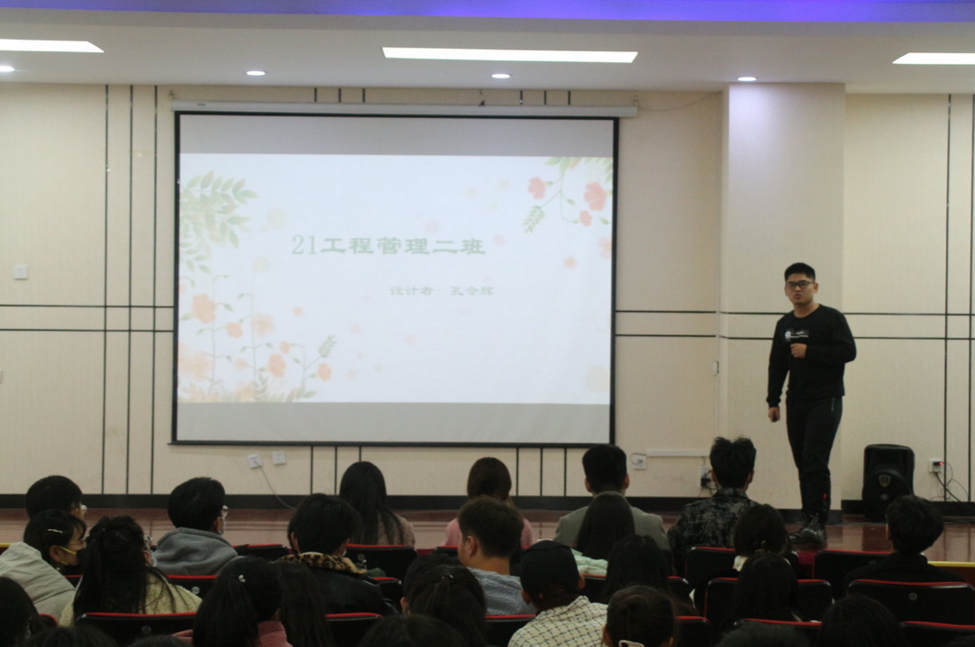 参赛选手积极找寻班级特色,并将自己对班集体最深切的热爱融入到自己的作品之中。决赛采取抽签方式决定各组出场顺序,各班级小组按照抽签顺序依次上台,对自己所设计的班徽进行设计灵感,设计过程及理念展开详细的阐述。活动过程中也穿插了小游戏邀请观众们互动以及观赏小短片来增添活动的趣味性。