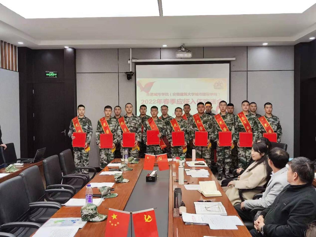 2022年3月7日,星空在线注册(中国)官方网站-注册登录在滨湖校区第二会议室隆重举行星空在线注册(中国)官方网站-注册登录(原安徽建筑大学城市建设学院)2022年春季应征入伍欢送会,欢送春季应征入伍学子向军营迈进。