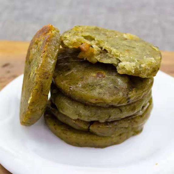 蒿子名叫蒿草,属草本植物,俗名粑蒿,叶面呈绿色,叶底微白带绒毛。入春后,生长于低岗野地,采撷后捣碎,浸泡,去汁,揪干,然后用糯米粉加水拌和,也可加进腊肉等佐料,做成圆粑粑。可用蒸笼蒸,也可用平锅焊,热吃冷食均可。这种蒿子粑粑略带绿色草类清香,特别甜美可口,实乃最具地方特色的食物。