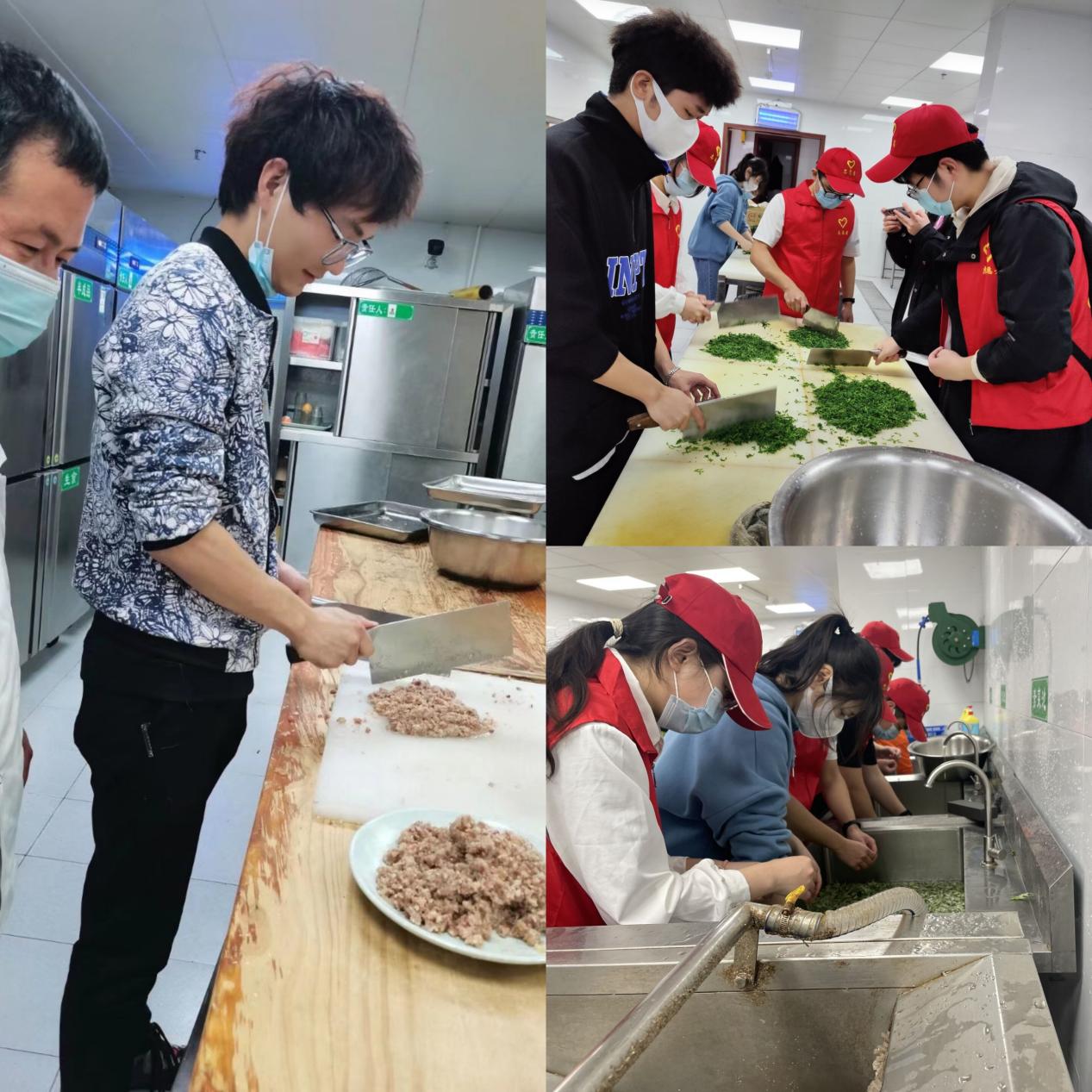 经过第二轮的筛选后,在食堂厨师的指导下开始了清洗、捣碎,浸泡,去汁,揪干等过程。学生的参与积极性非常高涨,大家踊跃尝试,在实践中学习方法和经验,在劳动中收获成长和欢乐。