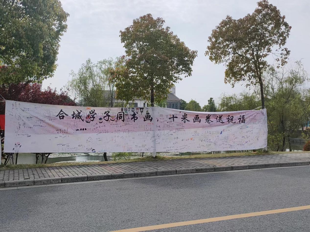 书画是书法和绘画的统称,“画中有诗,诗中有画”,在中国古代,诗与画分不开,画中常常包含着艺术家强烈的思想感情。活动当天,书画社人员在食堂马路对面摆好桌子,铺上长长画卷,准备了五颜六色的画笔,供同学们书写。同学们纷纷拿起画笔,在卷轴上写下疫情褪去后自己想去的地方,想见的人。疫情虽然阻挡了同学们的步伐,但是同学们的思想始终活跃,通过在画卷上书写这种形式来抒发对外的向往,表达了同学们对疫情散去的期待。活动结束后,画卷被张贴起来供同学们观赏。