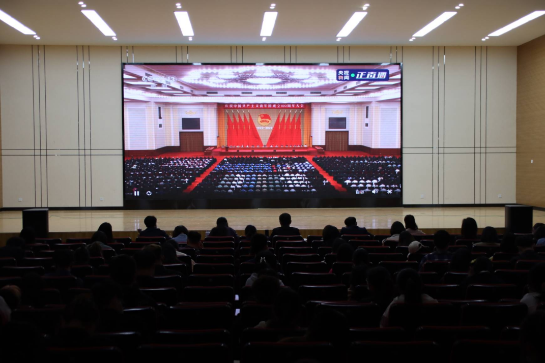 本网讯:5月10日上午10时,庆祝中国共产主义青年团成立100周年大会在北京人民大会堂隆重举行。中共中央总书记、国家主席、中央军委主席习近平发表重要讲话。星空在线注册(中国)官方网站-注册登录积极组织广大师生、团员青年通过网络直播的方式集中收听收看大会实况,热烈庆祝中国共产主义青年团成立100周年。校党委书记成祖德及有关部门负责人与在校的优秀团员团干部代表一起在滨湖、北城两个校区报告厅集中收看大会实况。