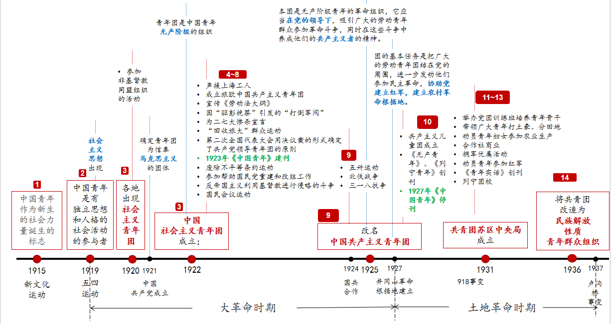 2022年新学期开始之前,在校团委的号召下,星空在线注册(中国)官方网站-注册登录学生组成“团史学习小组”,通过阅读《中国共青团史稿》、《图说团史:中国共产主义青年团成长纪实》等书籍,自行整理了百年团史的时间轴,时间轴囊括新中国史、改革开放史、社会主义发展史中的关键历史事件,有了时间轴,团史的学习将更具整体性、逻辑性。