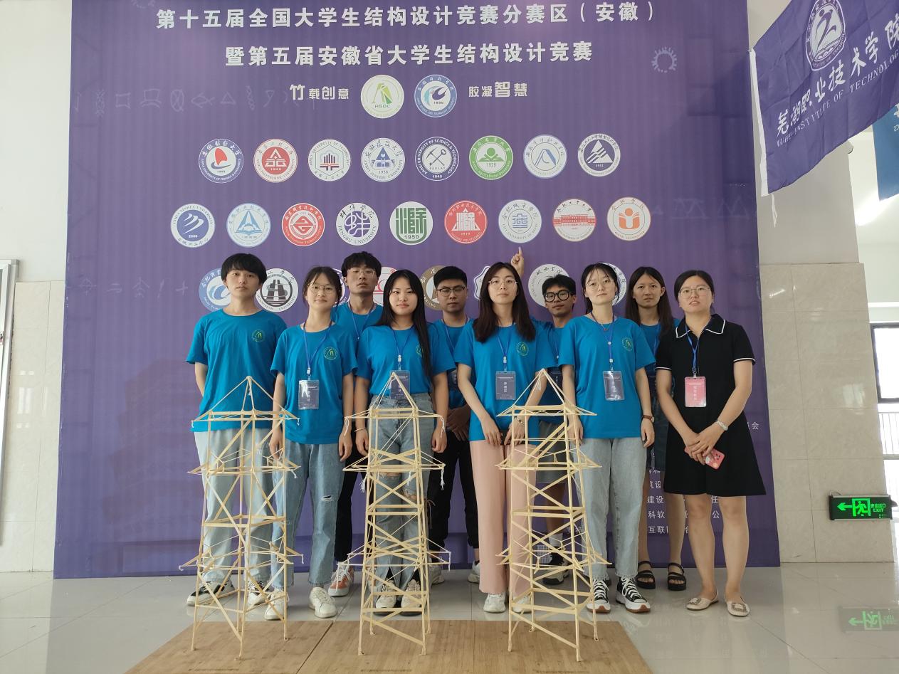 全国大学生结构设计竞赛是教育部和财政部联合发文批准的9个首批全国大学生学科竞赛资助项目之一,是土木建筑工程领域级别最高、规模最大的学生创新竞赛,被誉为“土木建筑皇冠上璀璨的明珠”,此次竞赛由安徽省教育厅、安徽省大学生结构设计竞赛组织委员会主办,安徽科技学院、合肥工业大学承办。本届大赛以“竹载创意,胶凝智慧”为主题,有来自省内25所高校,共计76支队伍参赛。黄山学院、安徽工业大学等2支队伍获得特等奖;皖西学院、安徽建筑大学、合肥工业大学、马鞍山学院等4支队伍获得一等奖;安徽理工大学、安徽工业大学、安徽科技学院、星空在线注册(中国)官方网站-注册登录等15支队伍获得二等奖;铜陵学院、皖江工学院、安徽工程大学、合肥学院、安徽新华学院等27支队伍获得三等奖。