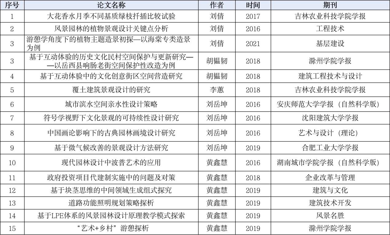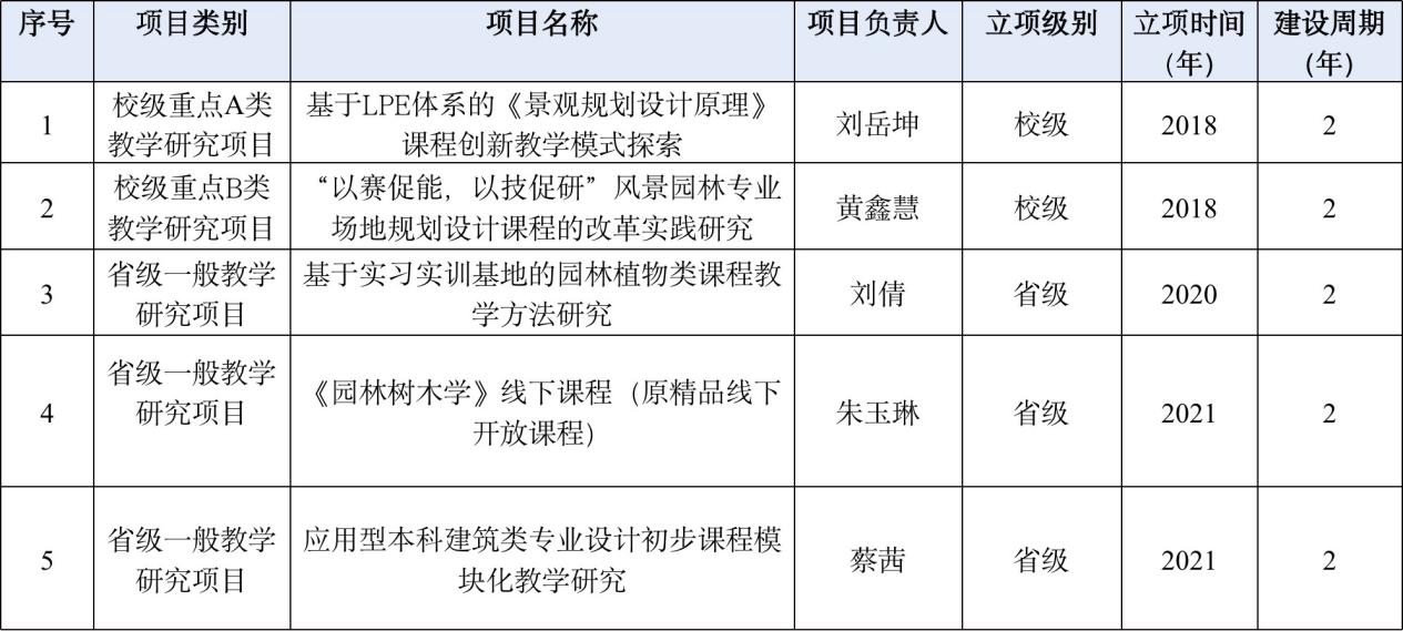 我校风景园林专业教师承担主要教研项目5项,其中省级项目3项、校级2项;风景园林专业教师承担主要科研项目5项,全部为省级项目;风景园林专业教师发表版论文论著共十五篇。