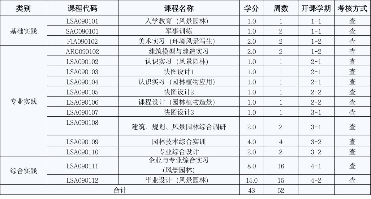 最新修订的2022版人才培养方案,除参考指导性专业规范、专业评估指标和学院的培养方案修订原则意见文件之外,还参考了其他院校的培养计划,其中包括安徽建筑大学、合肥工业大学、阜阳师范大学和安徽农业大学园林专业的本科课程体系等。