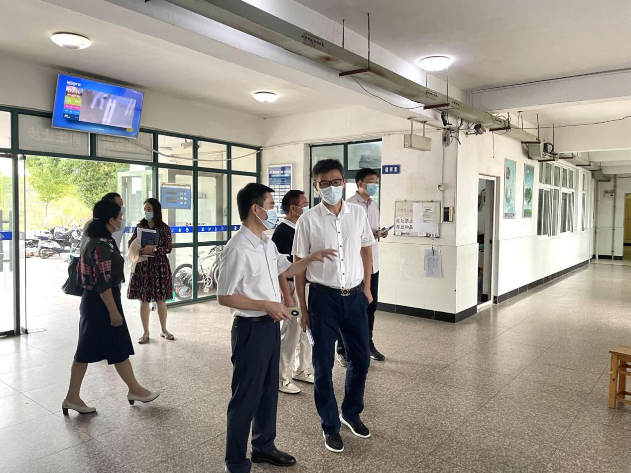 本网讯:8月31日上午,安徽省教育厅秋季开学疫情防控第二检查组成员安徽中医药大学人事处副处长方晓、保卫处副处长刘亚洲、总务处医务科科长李代凤来校检查2022年秋季学期开学疫情防控工作落实情况。校党委书记成祖德,校领导杨彦友,校防疫办、学生处、后保处有关负责人全程陪同检查。