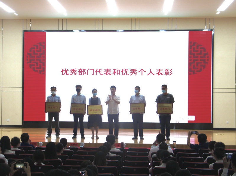 林瀚宣读了2021年度优秀部门和优秀个人表彰决定,与会校领导为受表彰人员颁发了荣誉证书。