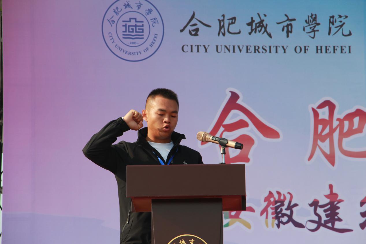 运动员代表、土木工程学院22级给排水专业刘立伟同学,裁判员代表、基础教学部体育教研室陈兆祥老师分别代表全体运动员和裁判员宣誓,表示将严格遵守比赛制度,文明比赛,公正裁判。