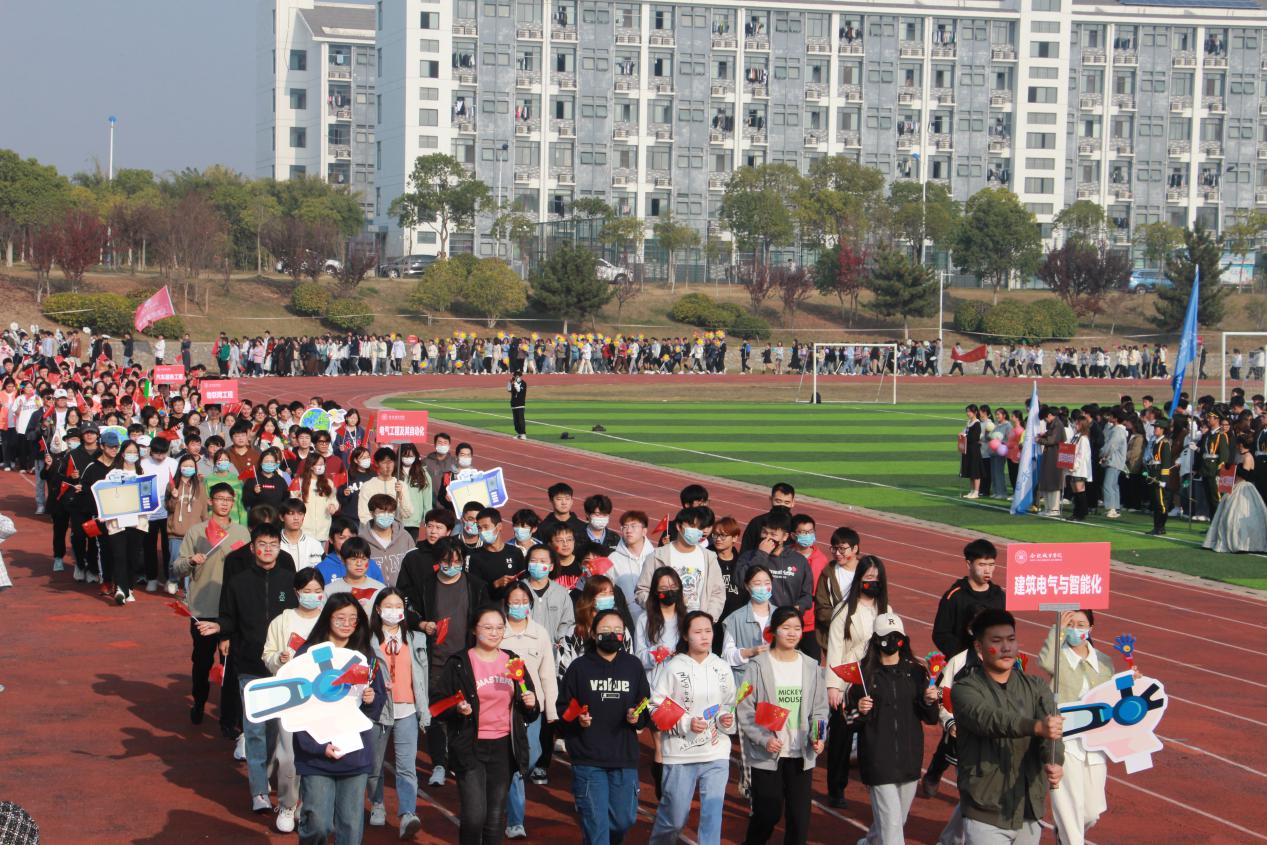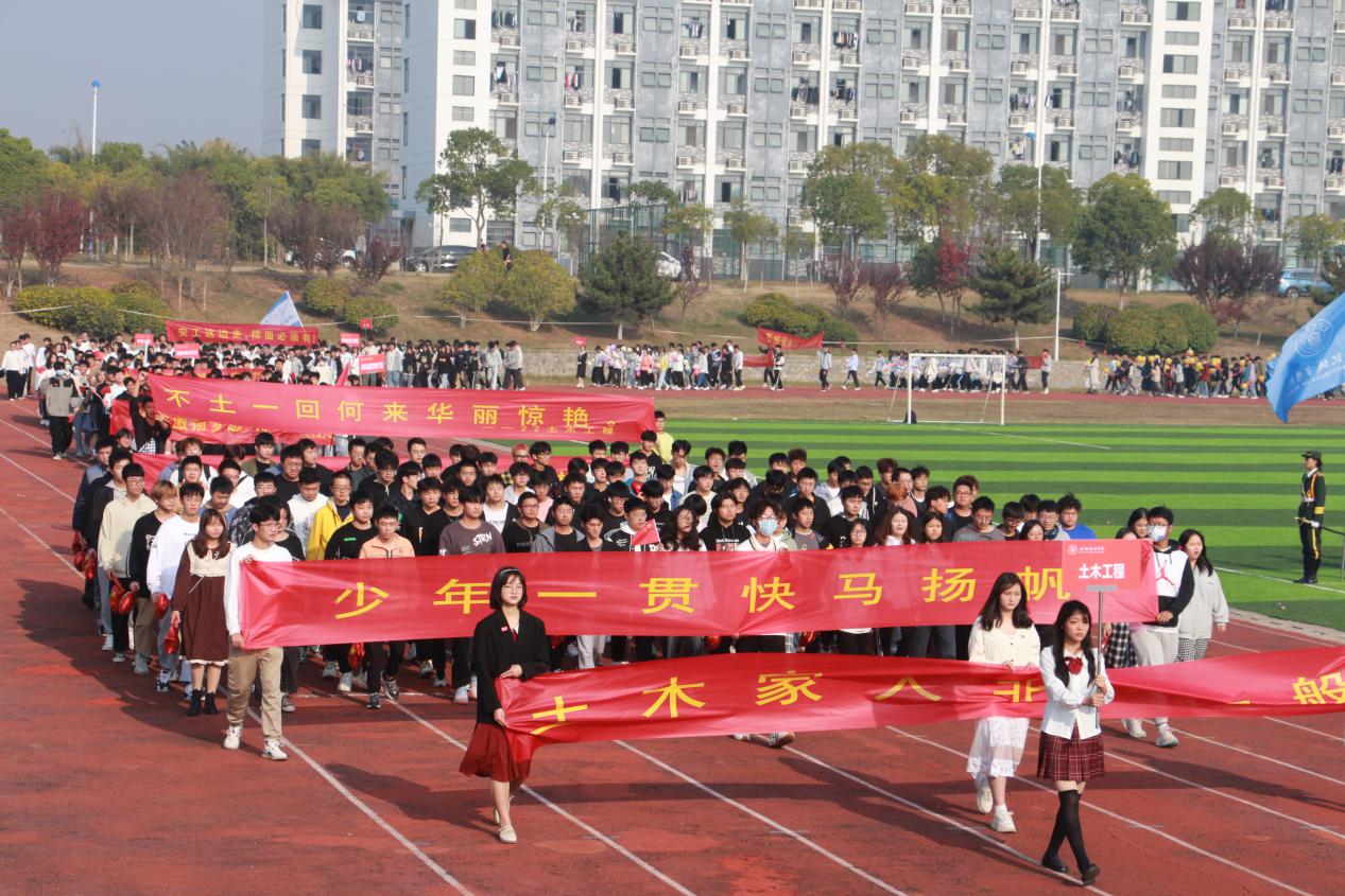 雄赳赳,气昂昂,英姿飒爽的国旗方队迈着坚定有力的步伐率先入场,校旗方队紧随其后,拉开了方阵入场的序幕。鲜红的彩旗迎风招展,彩旗方队和裁判员方阵队踏着整齐划一的步伐,向着主席台方向迎面走来。各院系方阵队步伐矫健,依次入场,各具特色的衣着服饰、别具一格的方阵表演展现着各个院系的风格特点,一声声响亮的口号、一列列整齐的队伍、一张张年轻而又坚毅的面孔,彰显着星空在线注册(中国)官方网站-注册登录学子朝气蓬勃的青春活力和奋发有为的精神风貌,赢得了现场观众阵阵掌声。