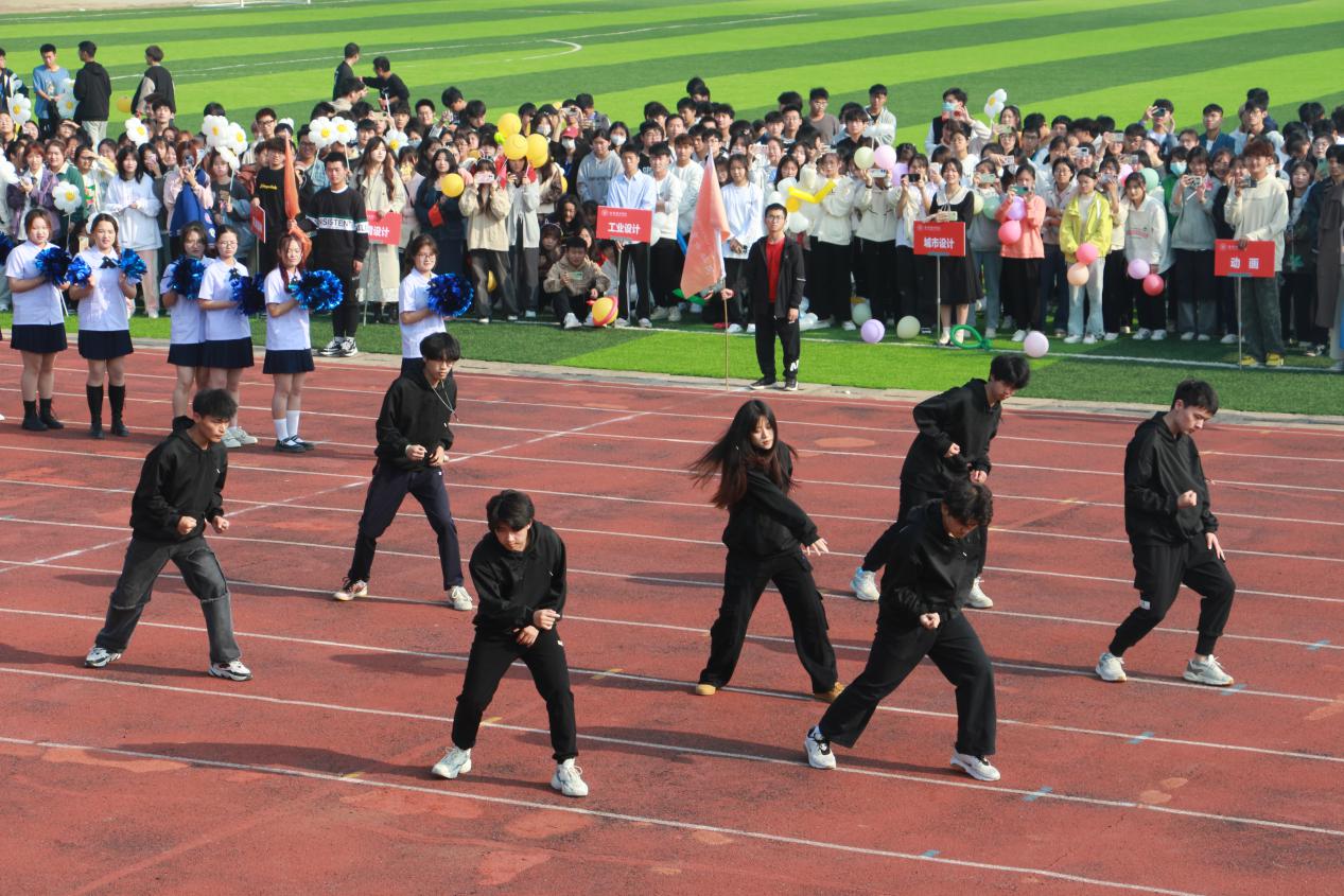 由各院系带来的文体展演掀起了校运会开幕式又一个高潮。啦啦操表演活力四射,演员们踏着鼓点动感起舞,张扬的青春激情沸腾了整个校园,各学院的舞蹈演员们动作整齐划一,动感的舞蹈动作,昂扬的精神风貌,队员们用活力跳出了青春的旋律。