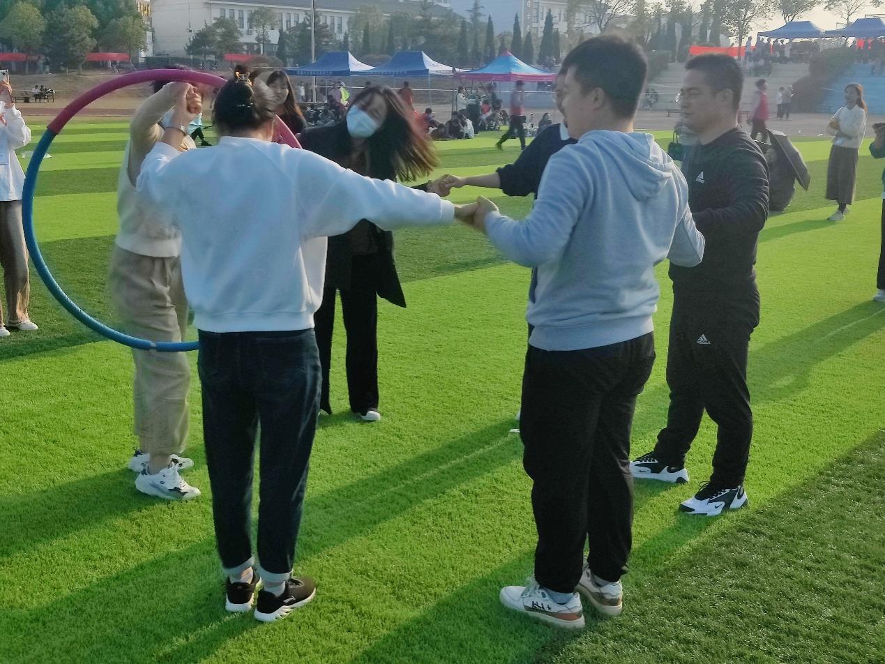 本次趣味运动会共设2个个人项目:投壶,踢毽子,3个集体项目:摸河过桥,传递呼啦圈,无敌风火轮。每一项都是精彩纷呈,趣味横生,但也同样充满挑战。每一个代表队都气势汹汹,每一场比赛都拼尽全力,我院参赛老师们团结协作,共同出谋划策,每一次比赛前都积极地进行练习,昔日里共同工作累积的默契在此刻迸发出精彩的火花,赛场上的表现更是激昂,呐喊声加油声掌声此起彼伏,参赛者的脸上更是洋溢着笑容,为取得的成功而得意,更为彼此间的绝佳配合而欢悦。