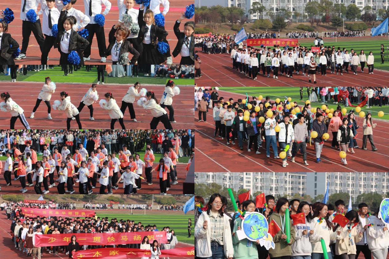 滨湖校区与北城校区的同学们齐聚操场。彩旗飘扬,伴着音乐声,各专业排着整齐的队形,高声呼喊口号,迈着整齐的步伐,自信且从容向主席台走去。校领导们纷纷致辞以表祝愿,接着裁判员、运动员代表们进行宣誓。会操表演上同学们大展风采,成为一道亮丽的风景线。