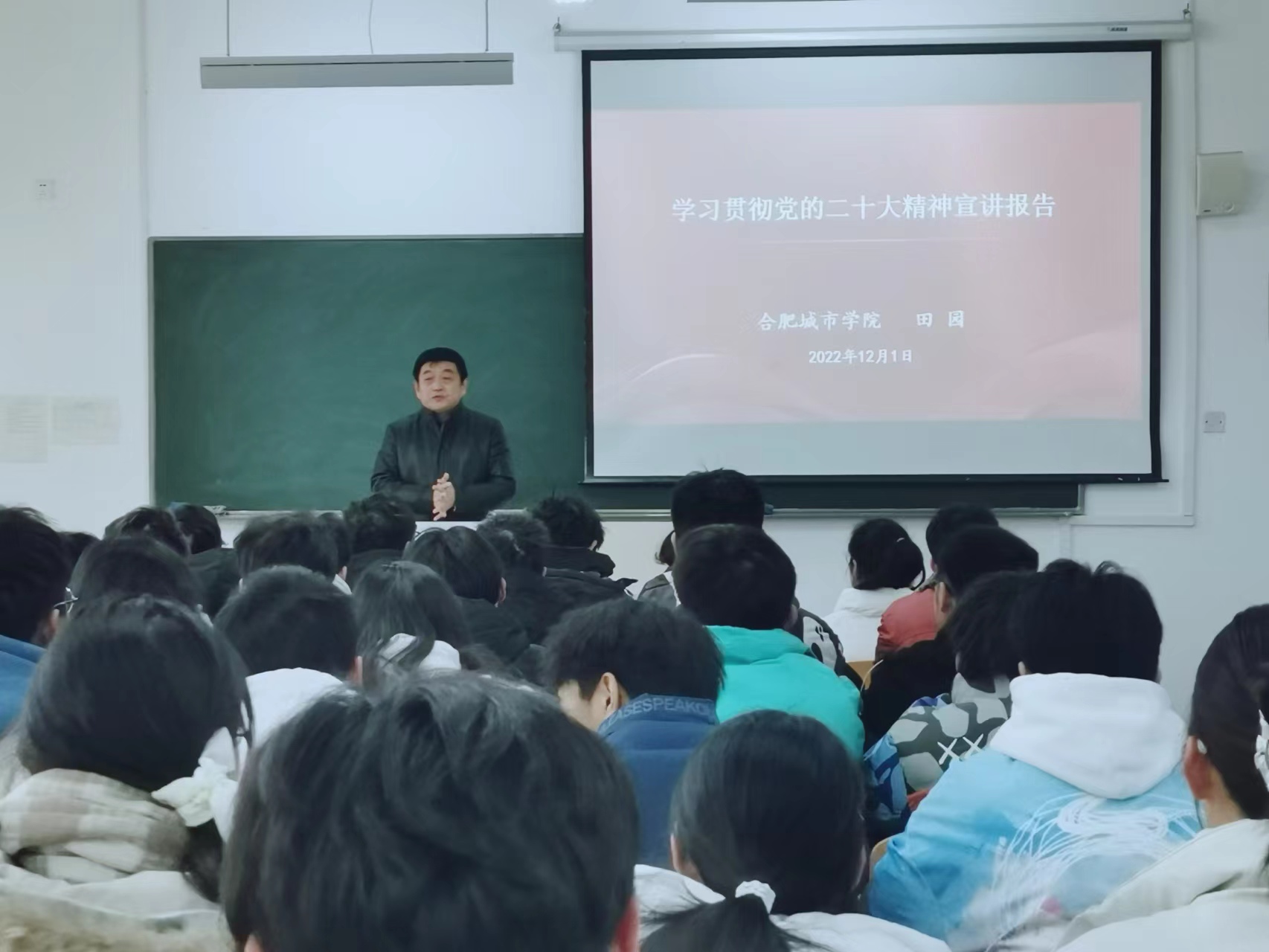 12月2日上午,副校长田园到滨湖校区南教407教室为2022级给排水专业的同学们带来以《学习党的二十大精神宣讲报告》为题的思政课,他从充分认识党的二十大召开的重大意义、深刻领会党的二十大精神的丰富内涵、全面贯彻党的二十大精神的基本要求三个方面,深入细致地宣讲了党的二十大报告精神。