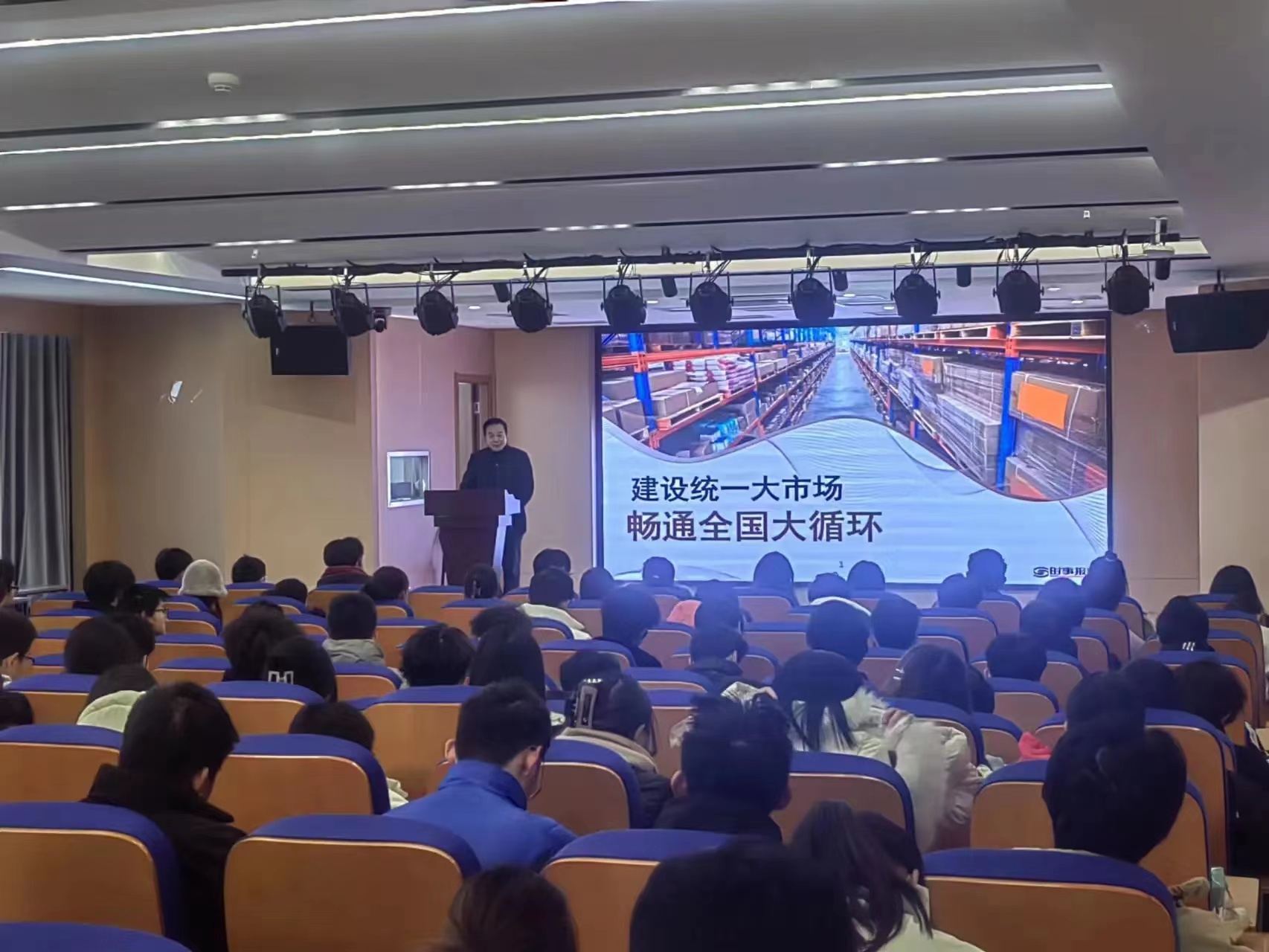 12月2日上午,副校长杨彦友在北城校区综训405教室向2022级大数据专业宣讲以《党的二十大精神:建设统一大市场,畅通全国大循环》为题的思政课。杨彦友引用习近平总书记的话:“当今世界,最稀缺的资源是市场。市场资源是我国的巨大优势,必须充分利用和发挥这个优势,不断巩固和增强这个优势,形成构建新发展格局的雄厚支撑”,接着,他问同学们什么是市场?市场和大家是什么样的一种关系?引起了同学们的好奇心。杨彦友理论结合实际,从不断凝聚的建设共识、事关长远的战略所需和由大到强的清晰路径,来阐述建设统一大市场,畅通全国大循环对促进我国经济高质量发展的重要意义,同学们产生了强烈的共鸣,课堂不时响起热烈的掌声。