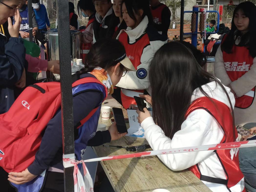 活动正式开始后,毅行者们在努力的向补给站前进,志愿者们在站点等待着他们的到来,引导他们到站点内进行及时的能量补充,同时另一边志愿们也在不断补充站点需要的物资,做好充足的后勤保障。
