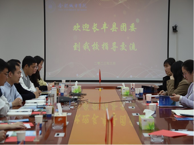 为进一步整合校地双方优势资源,做实做细团中央“共青团促进大学生就业行动”,服务我校学子就业,3月8日上午,长丰县团县委书记杜倩倩,长丰县团县委副书记孙霄,长丰县团县委宣传部部长黄雅婷,岗集镇宣传中心主任、团委书记谷郑怡一行来我校岗集校区调研。学生处处长、校团委书记林岳,学生处副处长、建筑与艺术学院党总支副书记童锐,经济与管理学院党总支负责人周世敏和我校团委相关代表参与座谈,双方围绕人才招引、大学生就业、大学生社会实践等工作交流讨论,座谈会由校团委书记林岳主持。