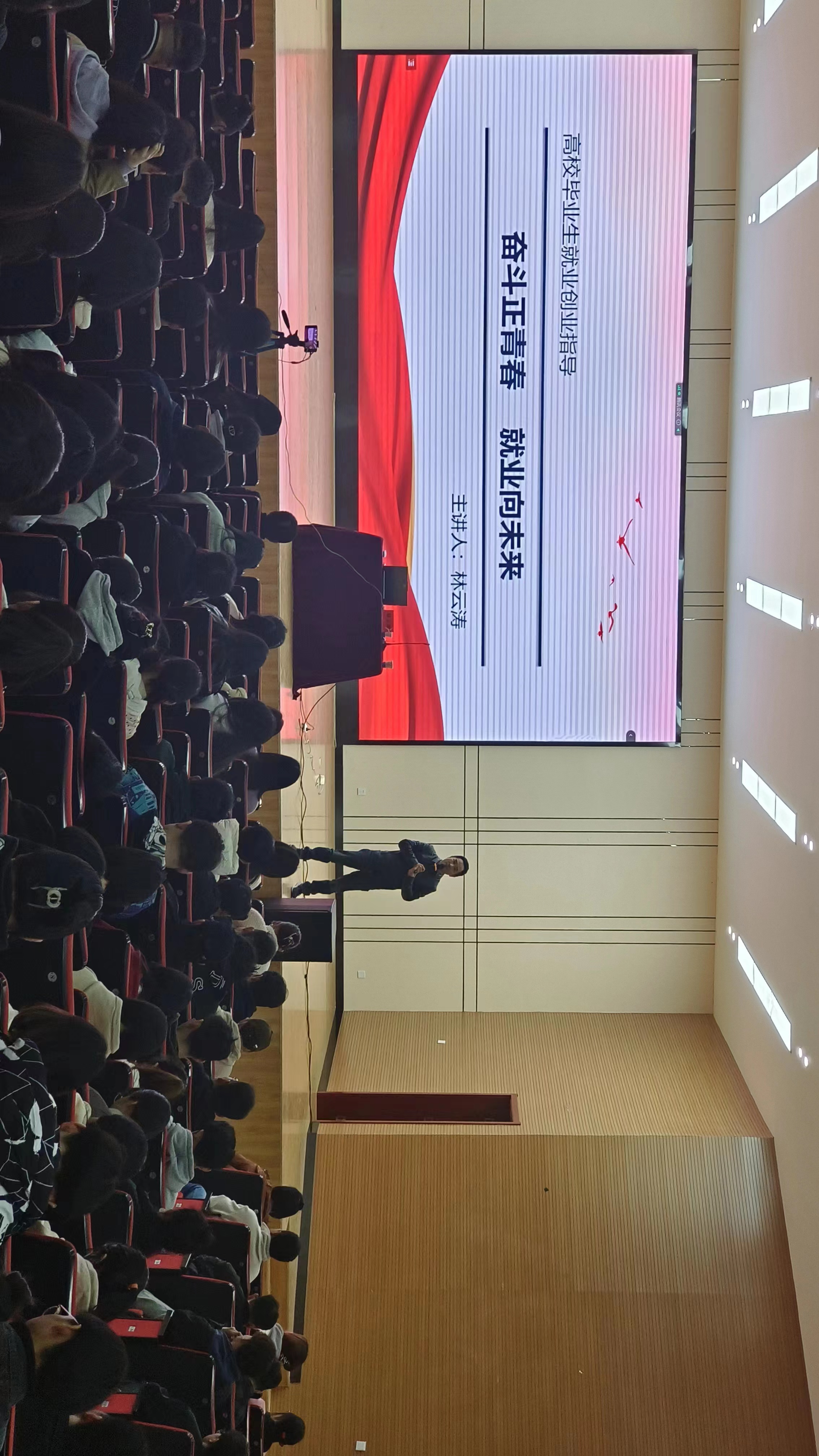 本网讯:为引导学生树立正确的就业观为,帮助学生准确有效的确定就业方向、解决在就业创业上的困惑,尽快地让他们在思想、行动上早做准备,助力学生的人生规划和职业发展,推进就业指导工作有序进行,3月23日下午,由学生处(就业创业指导中心)特邀合肥市就业创业指导专家林云涛在滨湖校区图书馆二楼报告厅作题为《奋斗正青春,就业向未来》的报告。校党员委员、副校长田园出席,学生处、机械与电气工程学院有关负责人及相关辅导员参加。此次讲座共计600余人参会,其中北城校区以直播形式参加。