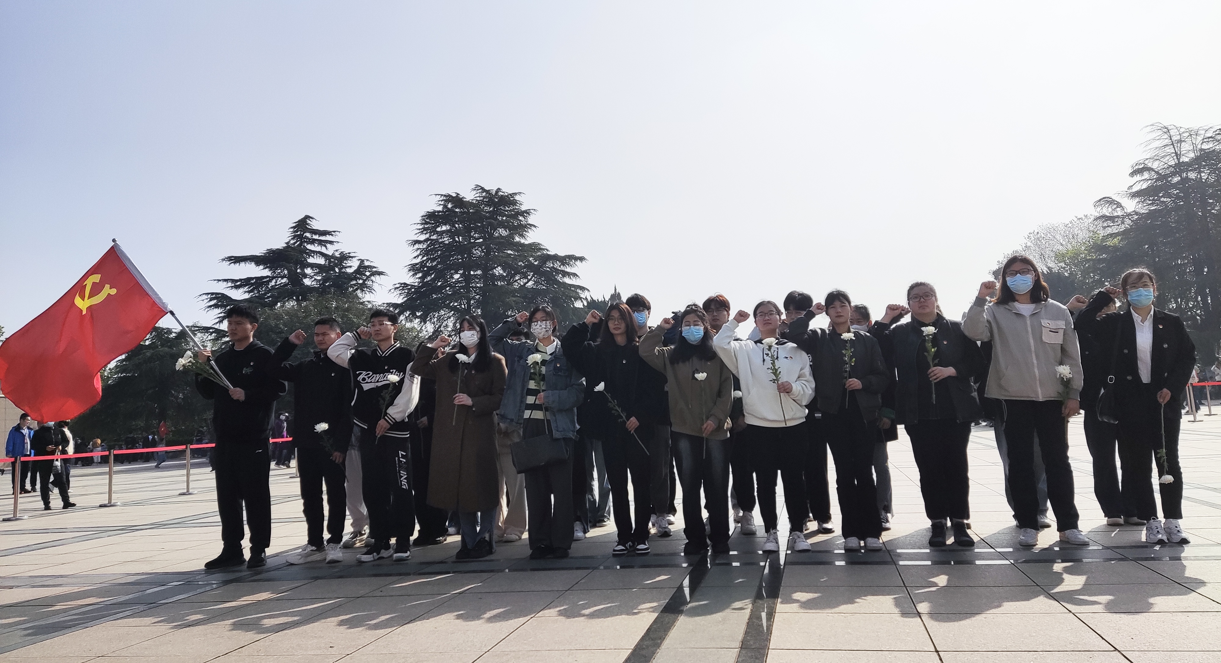 师生党员怀着崇敬的心情,在庄严的烈士纪念碑前齐唱国歌。向长眠于此的革命烈士三鞠躬并向烈士纪念碑敬献花,虔诚祭奠革命先烈的不朽英魂。在支部书记赵鹤的带领下,全体党员同志面对烈士纪念碑,庄重举起右手,重温入党誓词。