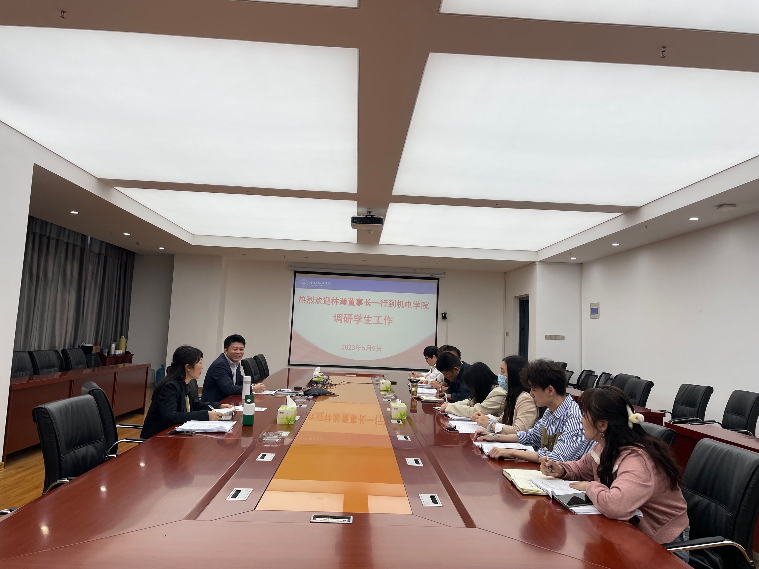 5月9日下午,校党委副书记、董事长林瀚,校党委委员、副校长田园及人事处有关负责人一行到机械与电气工程学院调研学生工作,机械与电气工程学院党总支负责人胡泽春,机电学院全体辅导员参加会议。
