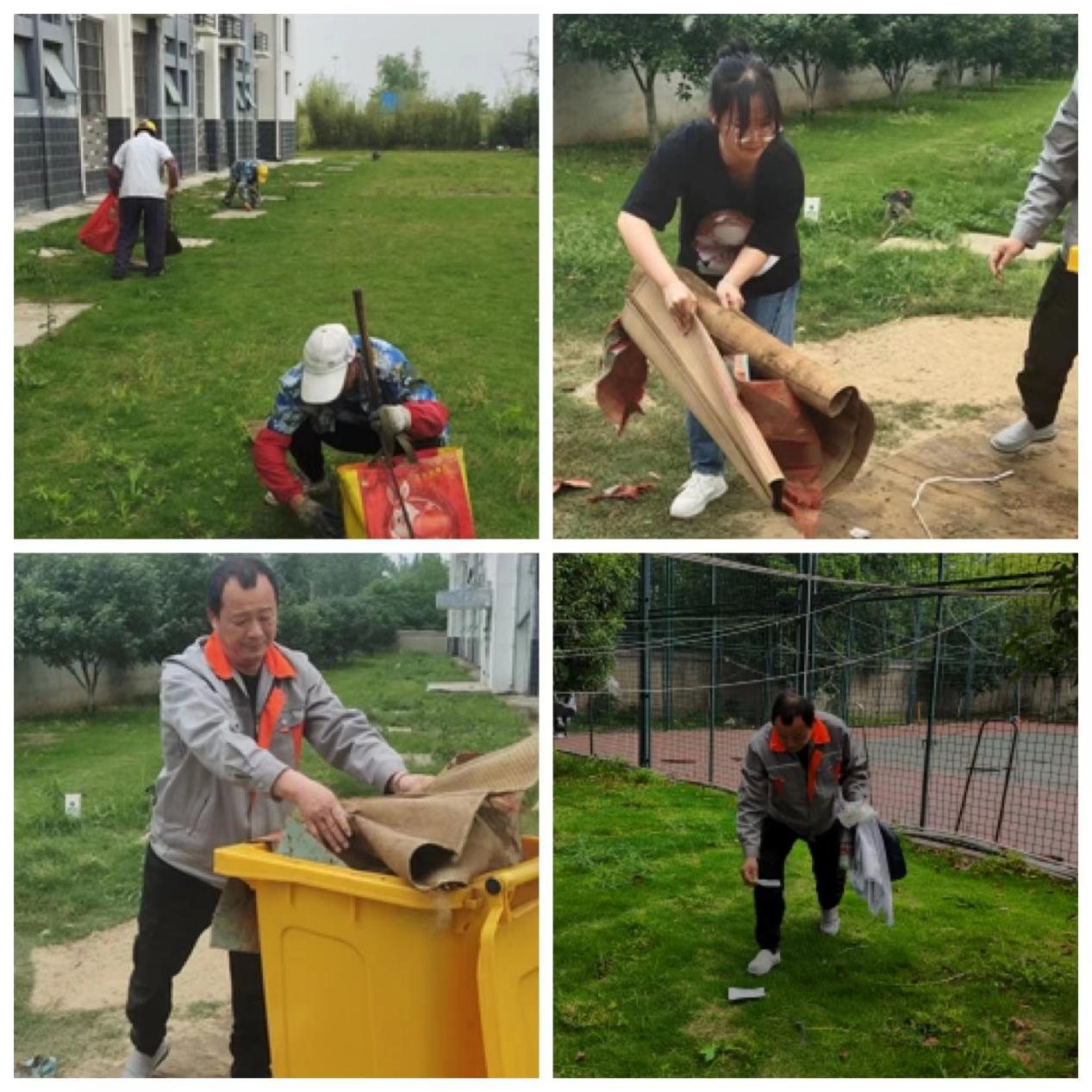 治理过程中,大家分工明确、责任到位、干劲十足,全体人员不怕脏、不怕累,积极发挥劳动奉献精神,用高涨的热情和勤劳的双手清洁自己的家园,通过清理白色垃圾、捡纸屑、捡烟头、扫异物、除杂草等方式,全面治理了学生公寓、综合楼、食堂等楼宇外围周边乱丢的生活垃圾和乱堆放的无再用杂物,确保环境整洁、卫生干净。