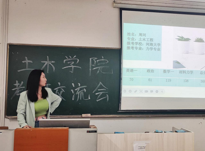 本次交流会邀请到土木工程学院2019级考取河海大学的周柯同学与考取安徽建筑大学的陈熙同学主讲,土木工程学院各年级有意向考研的学生参加并旁听。