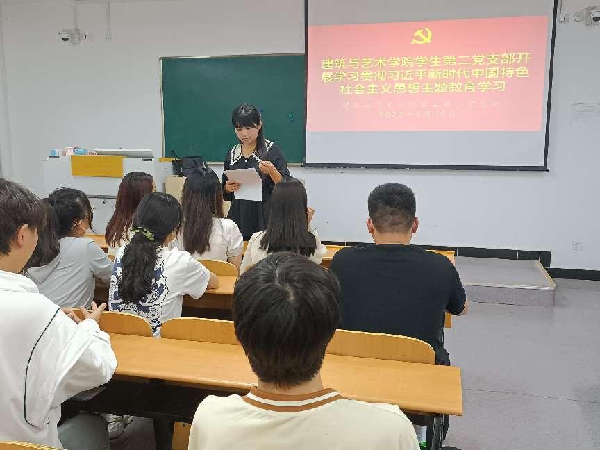 5月19日,建筑与艺术学院学生第二党支部在西教102教室召开学习贯彻习近平新时代中国特色社会主义思想主题教育学习会,学生第二党支部全体党员参与本次会议,会议由学生第二党支部书记韩璐主持。