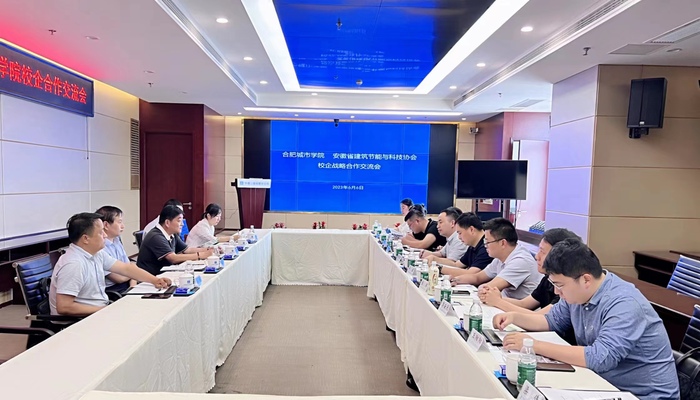 本网讯:6月6日下午,副校长田园、宇晓锋率学生处、经济与管理学院、建筑与艺术学院有关负责人一行到安徽省建筑节能与科技协会洽谈校企合作相关事宜。安徽省建筑节能与科技协会、中建二局安徽分公司、安徽晶宫绿建集团有限公司、安徽省建工检测科技集团有限公司、安徽省科信工程建设监理有限公司、安徽省建筑工程测试研究院、奥格科技股份有限公司有关负责人及相关成员出席本次会议。