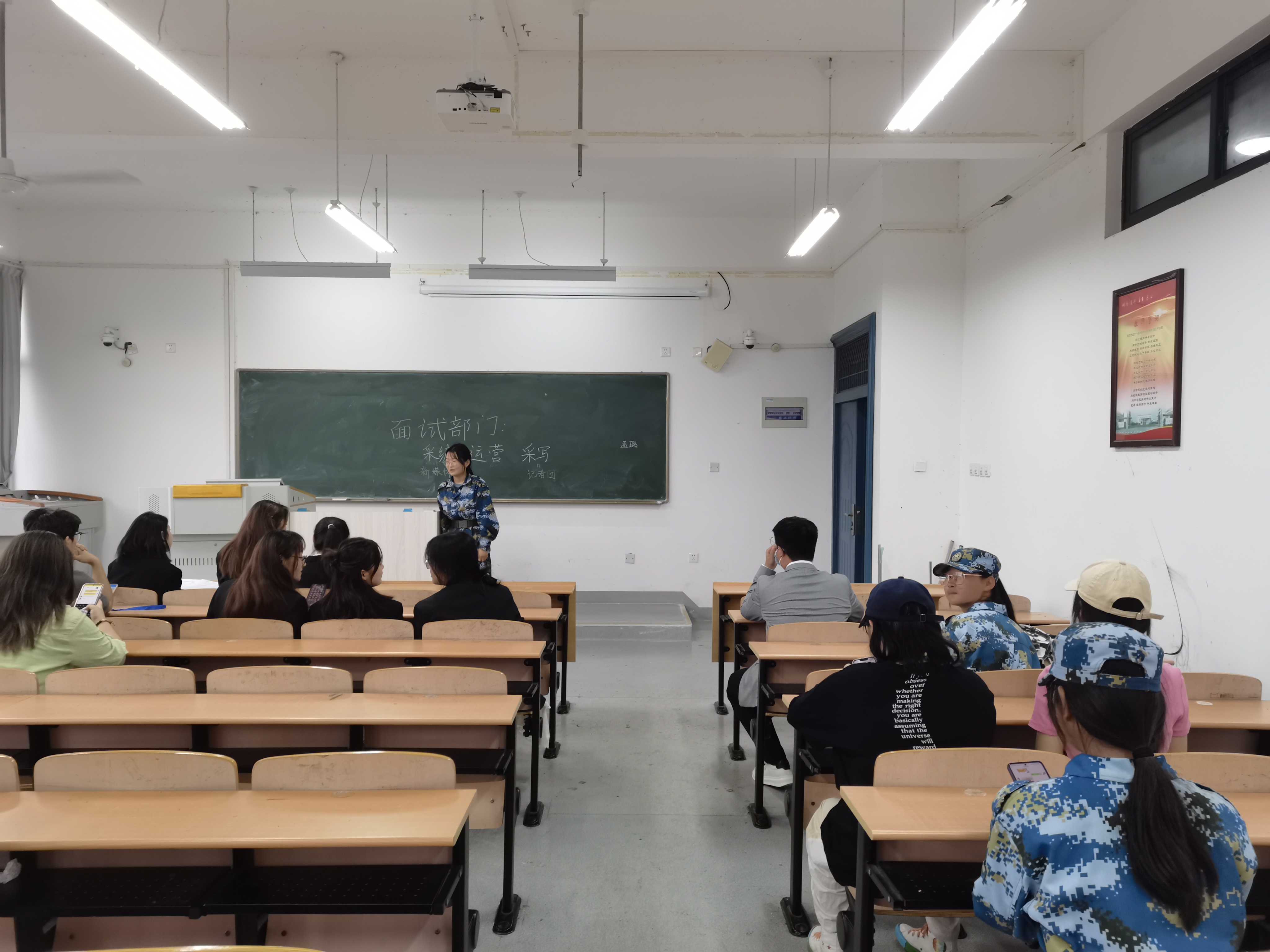 本次面试的新闻中心的部门有:综合行政办公室、记者团、广播台、新媒体。参加面试的学生来自23级新生。我校新闻中心的各位负责人明确了面试的目标和标准,并制定了面试问题和评估表。这些准备工作对于确保面试过程的公正和高效非常重要。