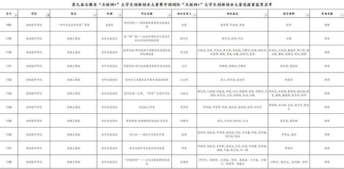 本网讯:近日,安徽省“互联网+”大学生创新创业大赛组织委员会公布2023年“互联网+”大赛省赛获奖名单。我校共有11个项目获奖,其中高教主赛道铜奖10枚、青年红色筑梦之旅赛道铜奖1枚,数量和质量均有大幅提高,位于同类院校前列。