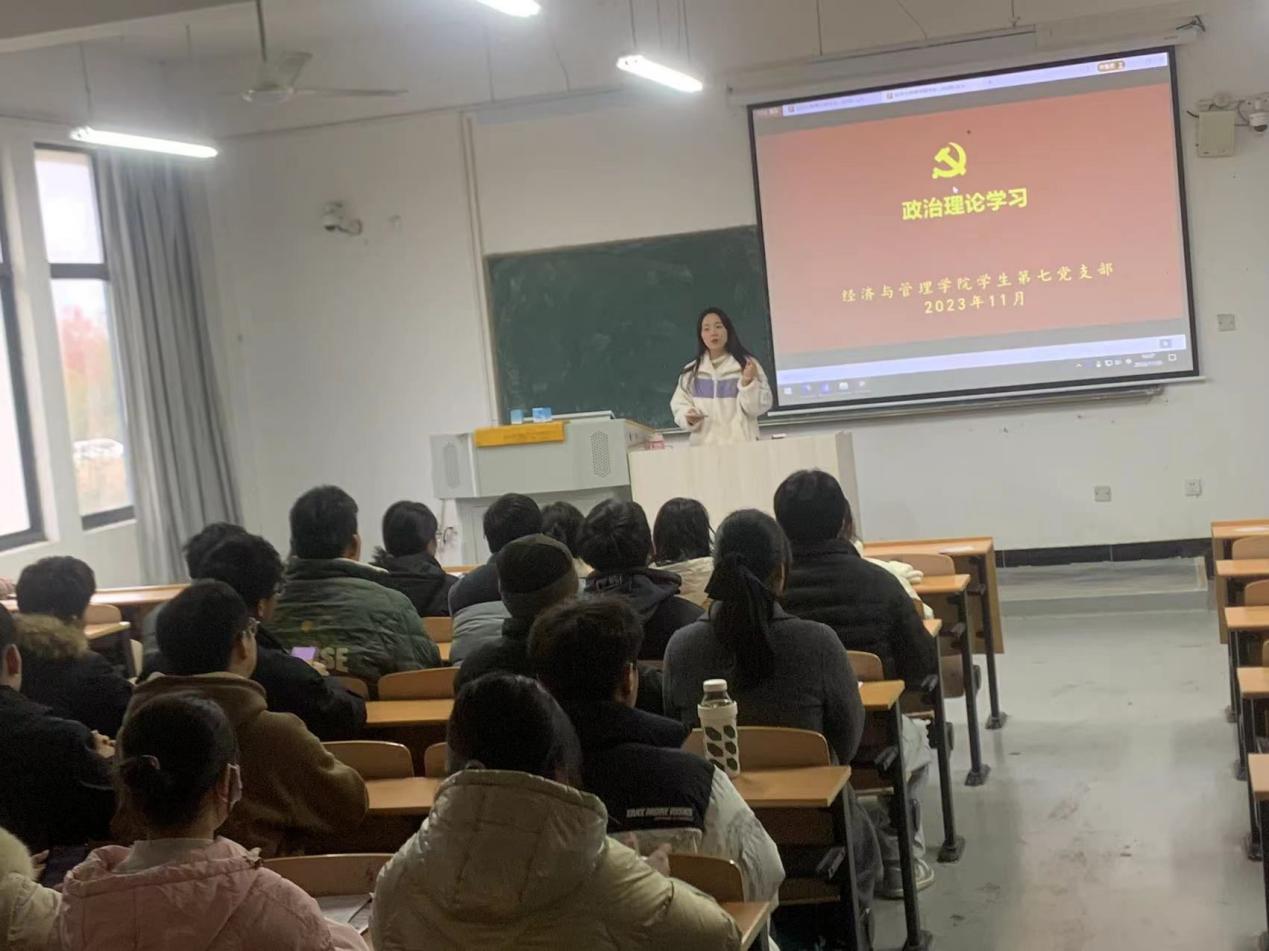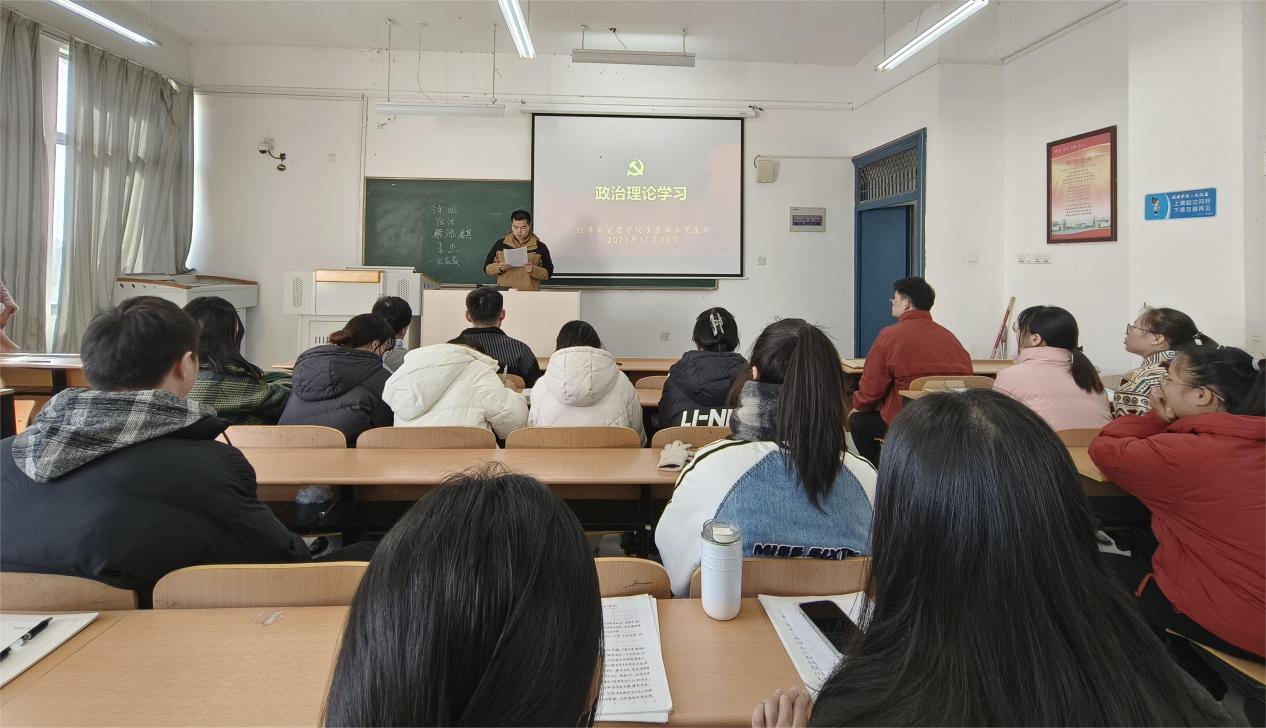 为深入学习领会习近平文化思想和全国宣传思想文化工作会议指示精神,切实让广大学生党员深刻体会宣传思想文化工作的重要性,经济与管理学院各学生党支部于11月下旬相继开展学习贯彻习近平文化思想专题学习,此次专题学习由各学生党支部书记主持,各支部党员、入党积极分子参加。