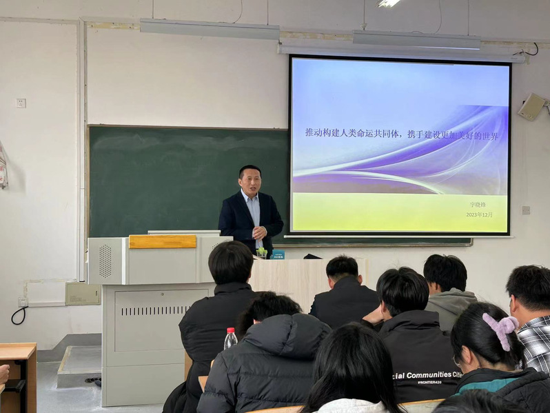 12月6日下午,副校长宇晓锋授课《形势与政策》“第八讲”,以《推动构建人类命运共同体,携手建设更加美好的世界》为题,在南教402教室为2023级土木工程3班、4班学生讲授形势与政策课。宇晓锋从“地球是我们共有的唯一家园”、“目前复杂严峻的国际形势”、“人类命运共同体的概念和核心理念”、“中国方案推动全球共同发展”,详细论述了如何构建人类命运共同体,建设更加美好的未来。他先是从地球与宇宙的关系入手,通过“暗淡蓝点”让学生对于我们身处的这个地球有具体的了解,又通过荣获德累斯顿和平奖的前苏联空军中校斯坦南斯拉夫·彼得罗夫的事例让大家知道在历史的某一刻,全人类的命运都被紧紧的联系在一起。